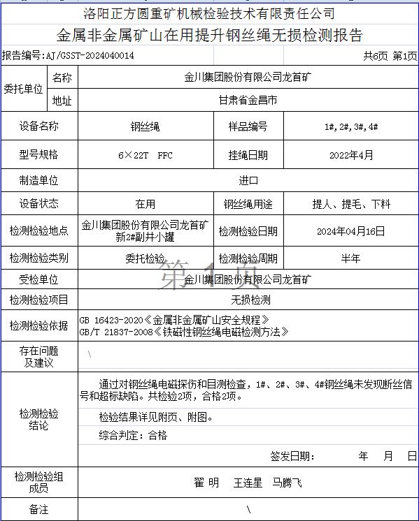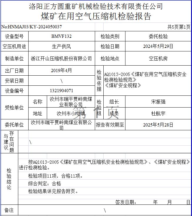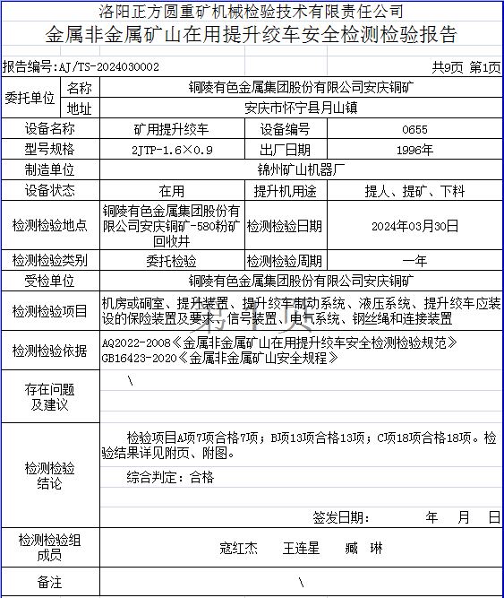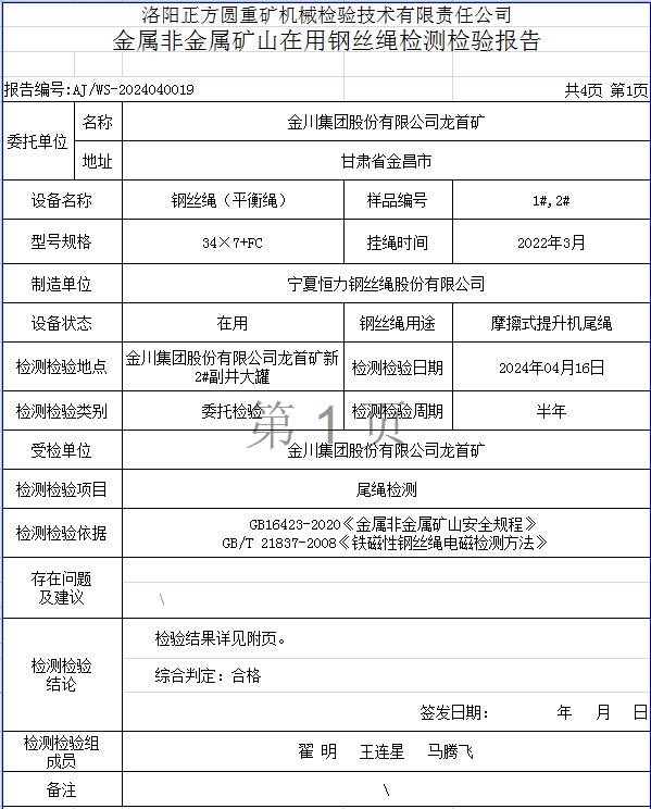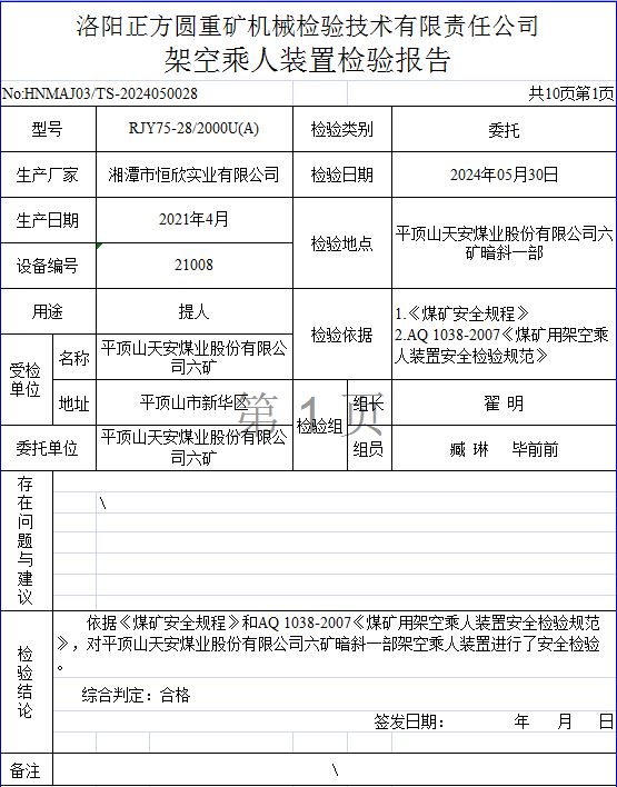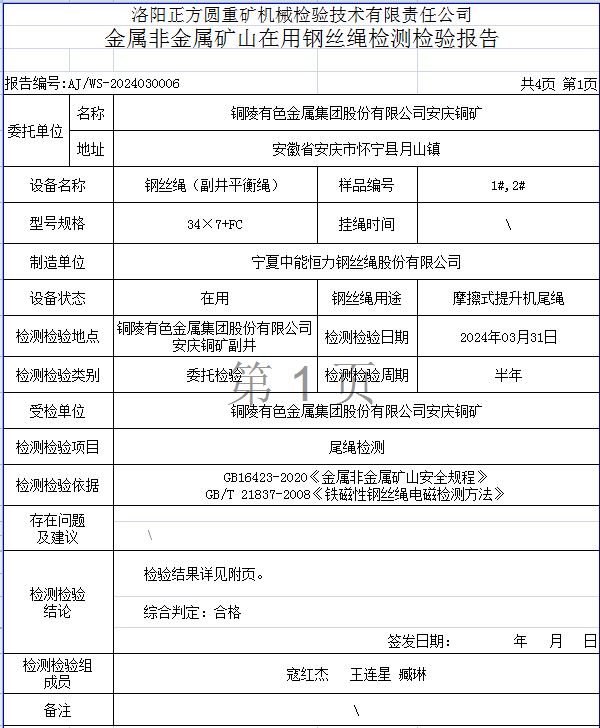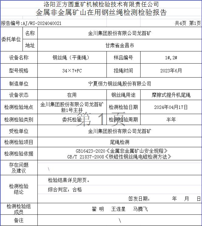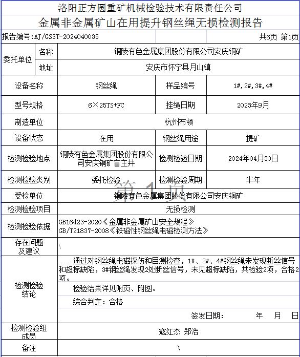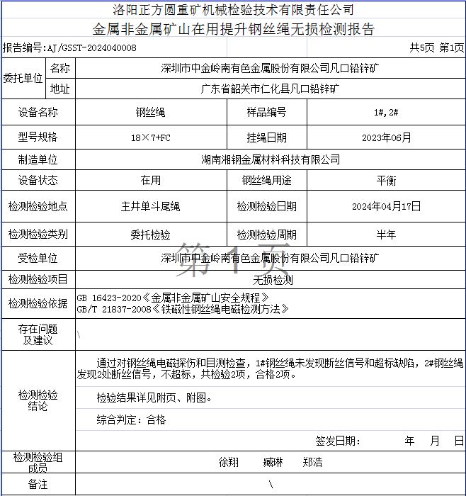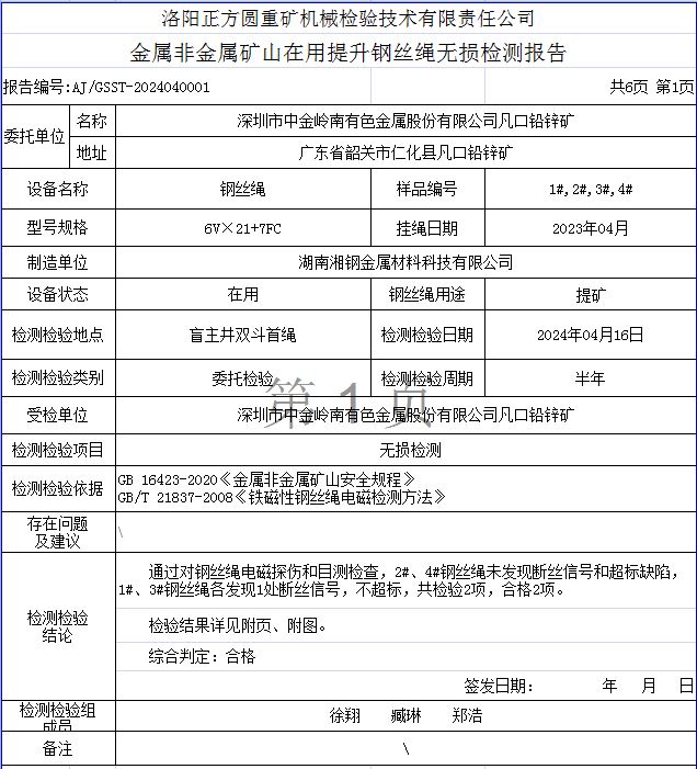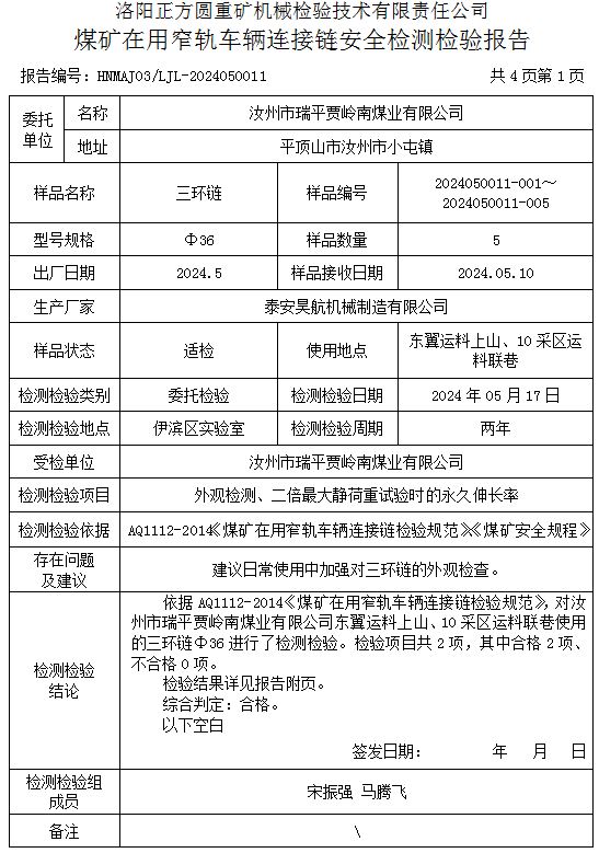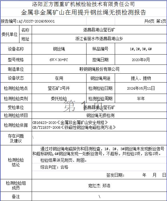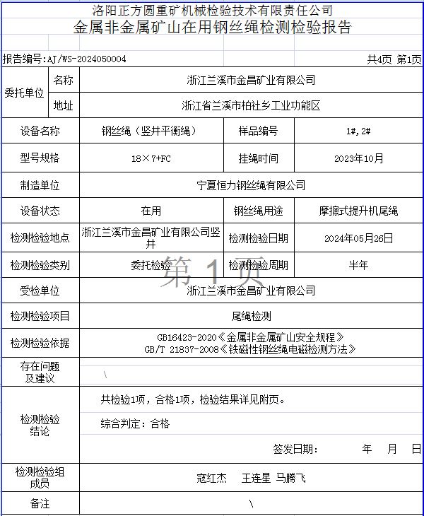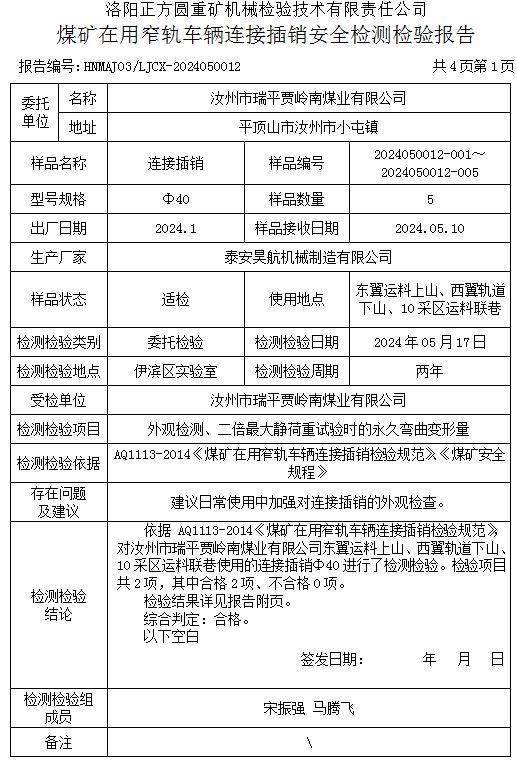 | 104 | ZJ202405MT001 | 2024.5.20 | 合格 |