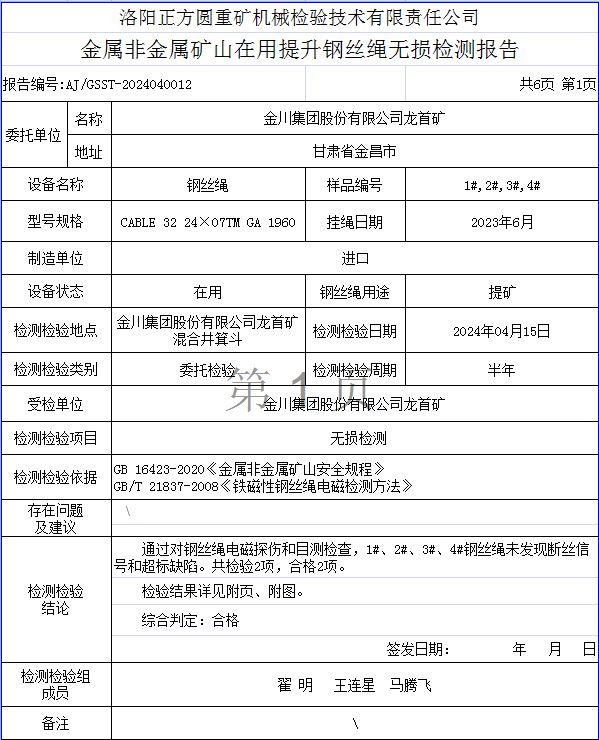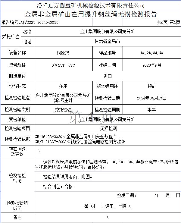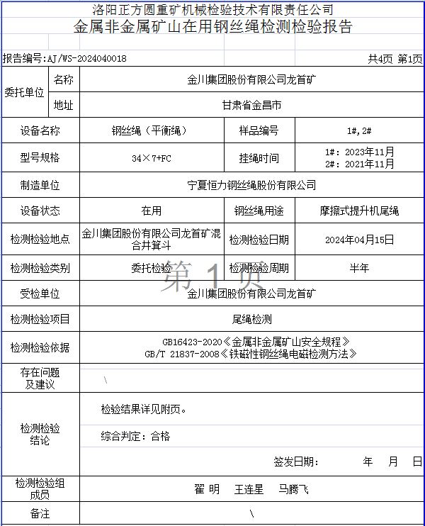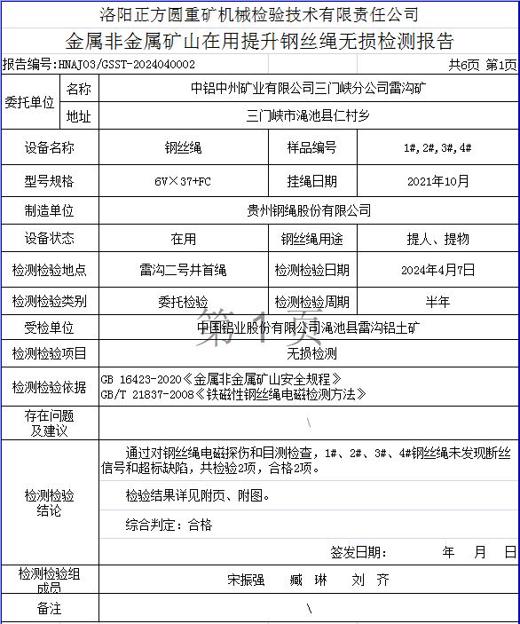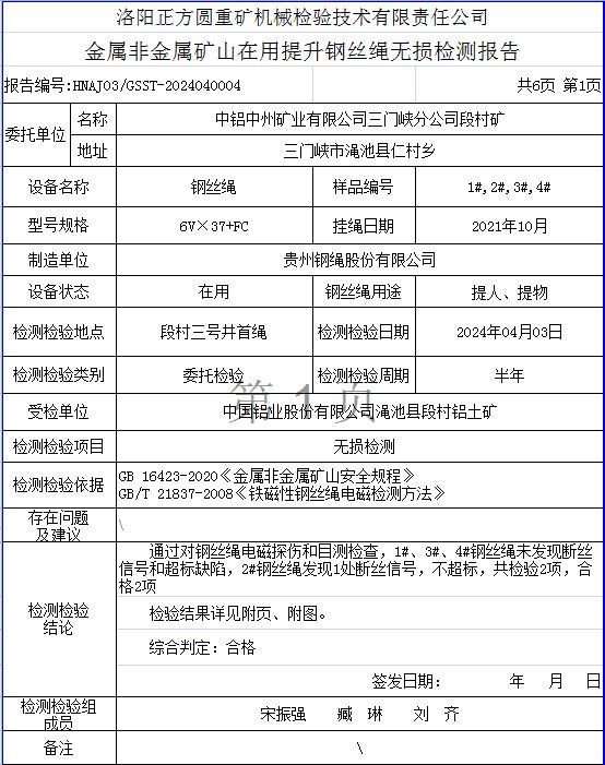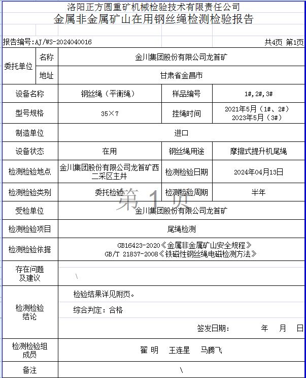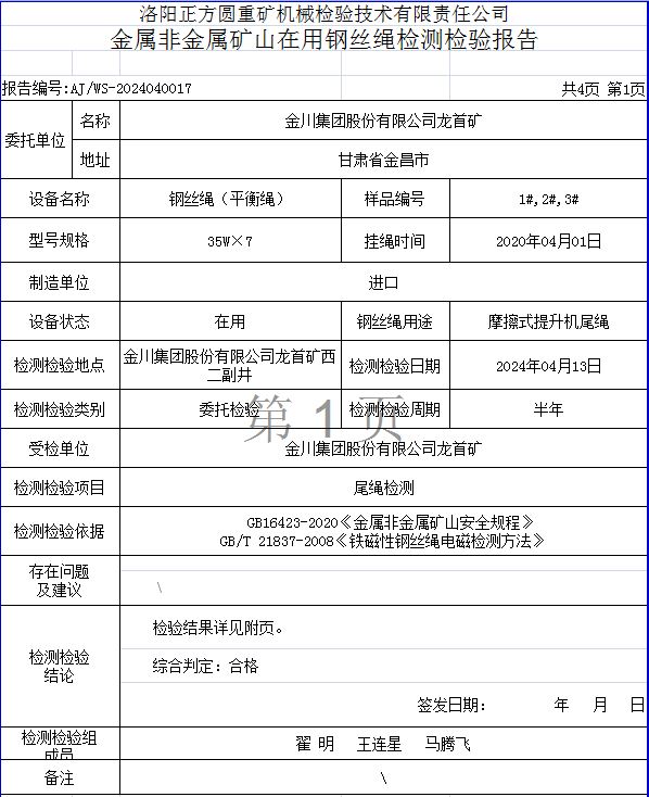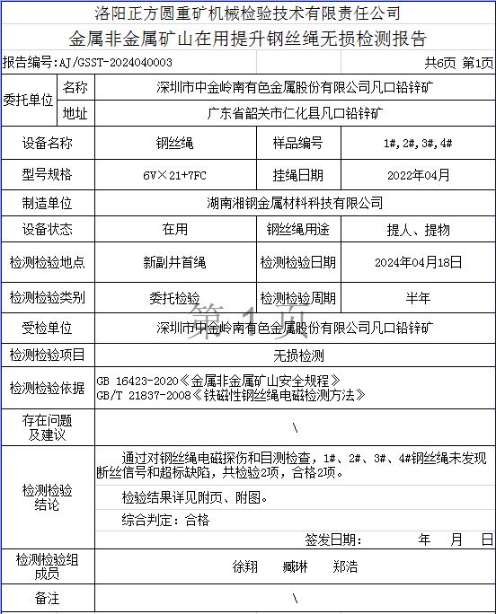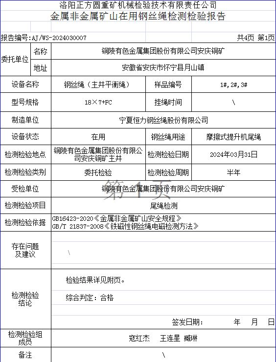 | 123 | ZJ202404MT002 | 2024.4.28 | 合格 |