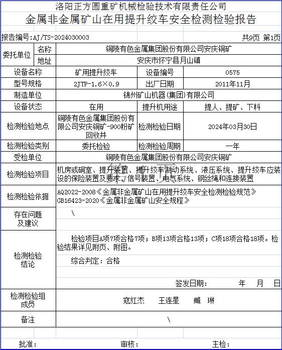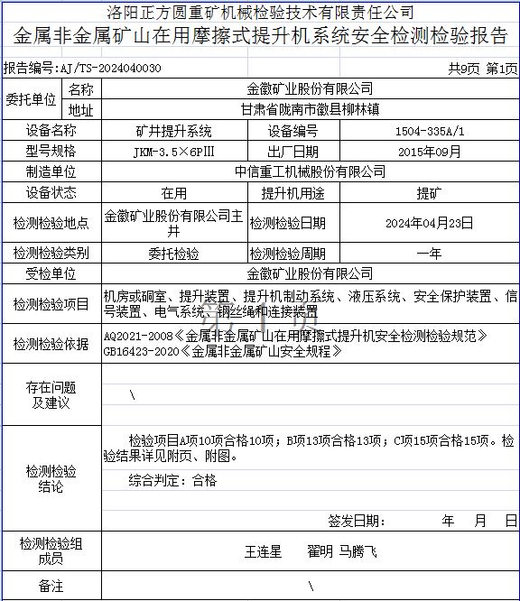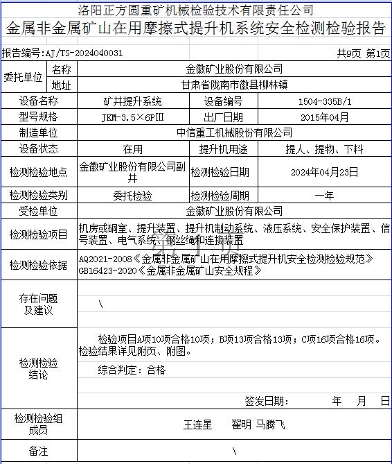 | 9 | ZJ202404MT001 | 2024.4.28 | 合格 |