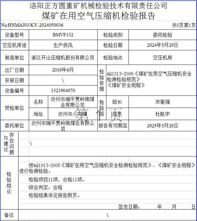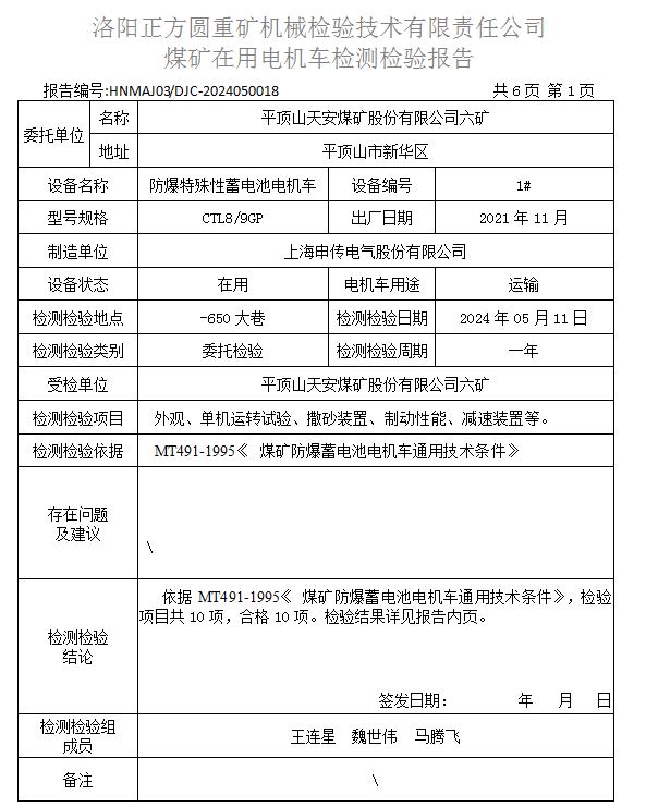 | 6 | HNMAJ03TF-2024040006 | 2024.4.28 | 合格 |