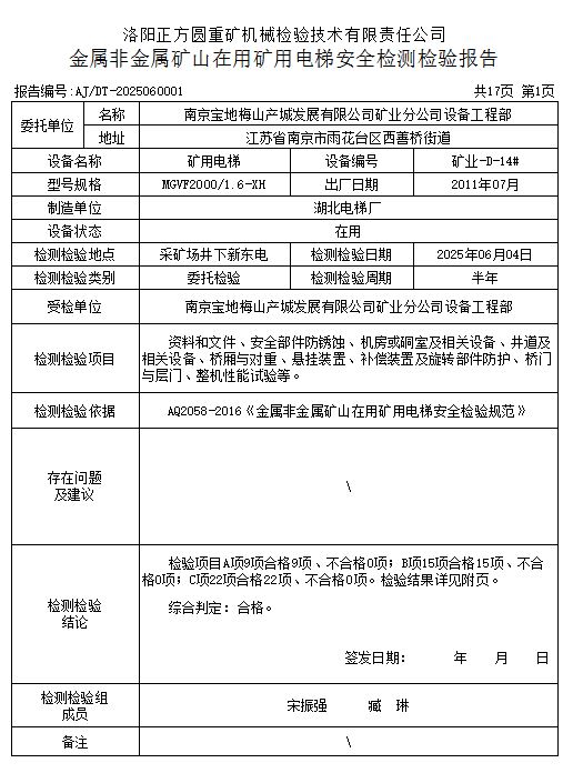 | 1 | AJDT-2025060002 | 2025.6.11 | 合格 |